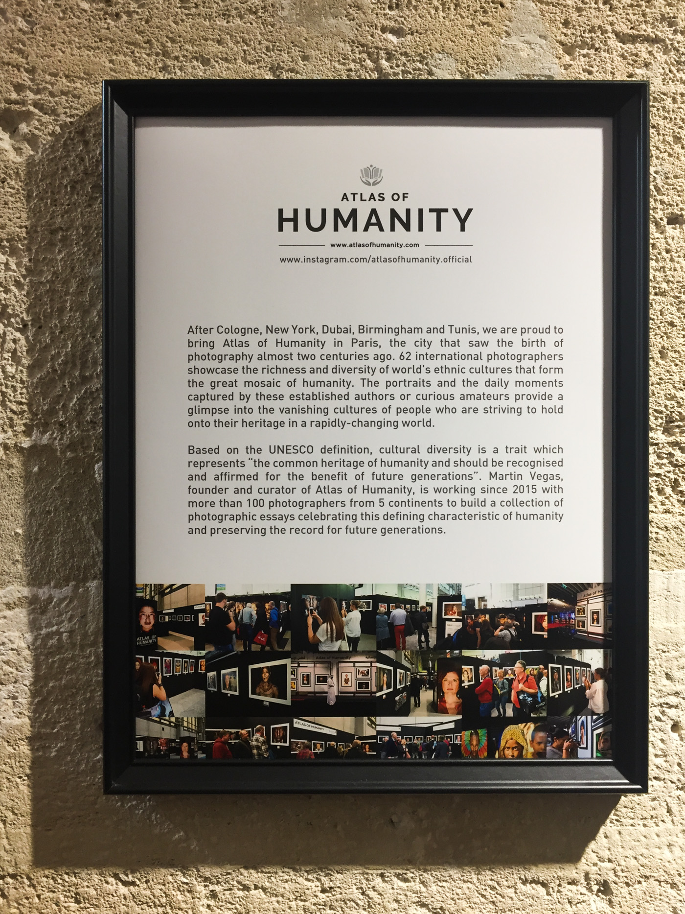Im Rahmen der „Paris Photo Off“ stellte die Galerie Joseph Le Marais eine Auswahl an Fotos des Projekts „Atlas of Humanity“ (www.atlasofhumanity.com) aus, an dem ich beteiligt bin und zwei Bilder zur Ausstellung beigesteuert habe. Anbei einige Impressionen von der Vernissage am 8.11.2019.